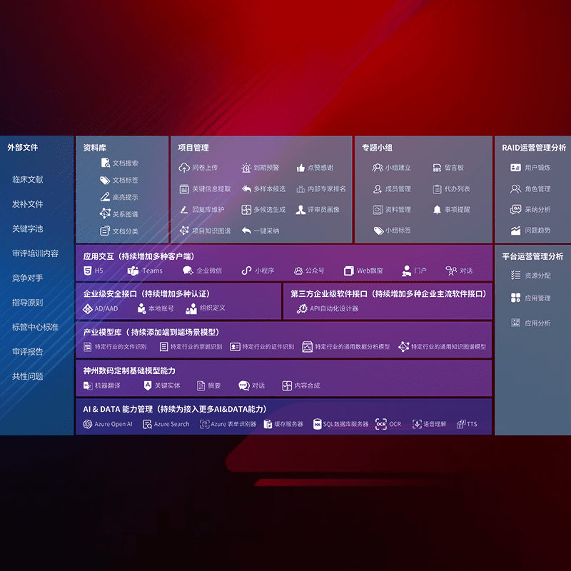 医疗器械产品上市前,,要熟悉严格与繁复评审标准,,,,整理分析监管机构指导文件中的海量信息。。。。企业急需一个智能化解决方案,,,提升知识管理效率,,,,提高评审通过率,,,,以提升其市场竞争力。。